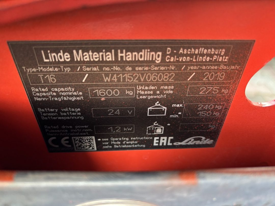Transpaletă electrică Linde T16 An fabricație: 2019
